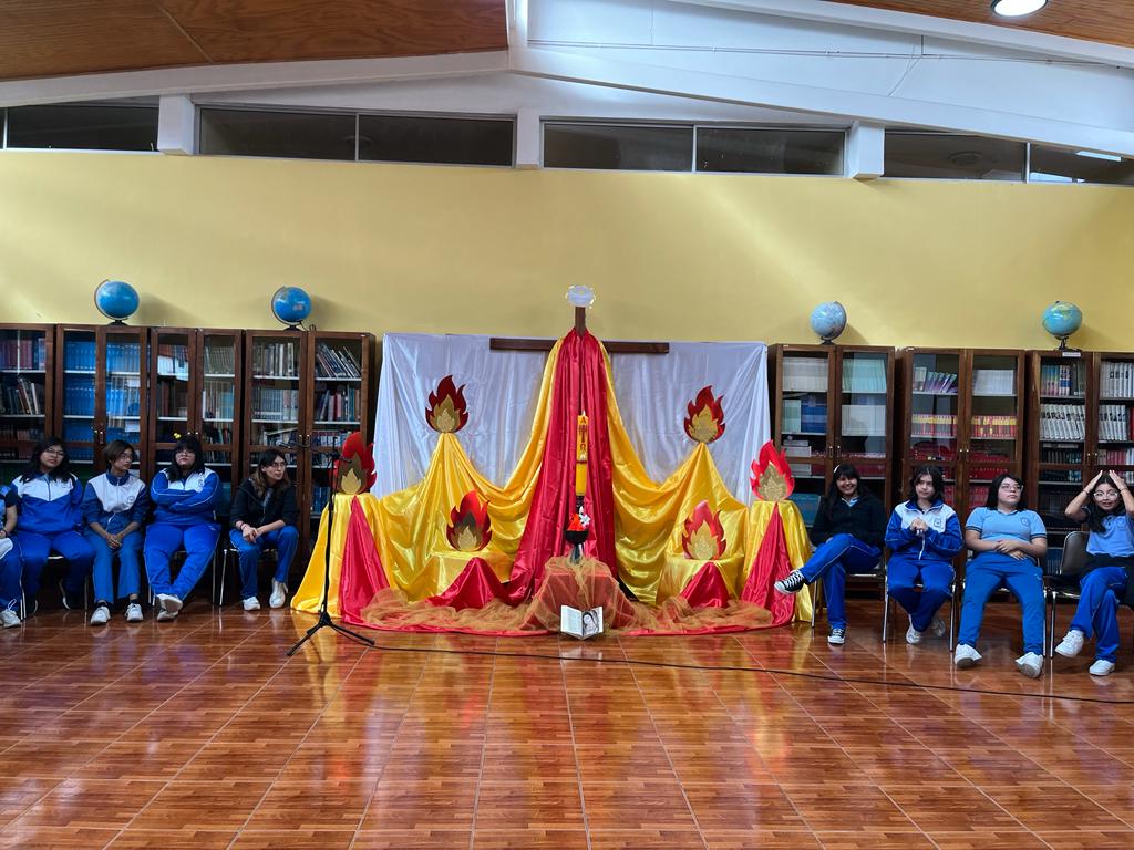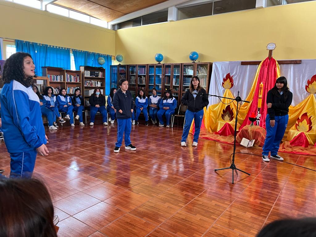 El día viernes 26 de mayo compartimos pentecostés, vía online con los tres colegios Hermanas Misioneras Dominicas del Rosario(HMDR), Colegio Nuestra Sra de Ayquina de Calama, Madre Ascención Nicol de Santiago y Colegio Femenino Madre del Rosario. En una tarde de alegría y festejo por haber recibido al Espíritu Santo y sus dones.
